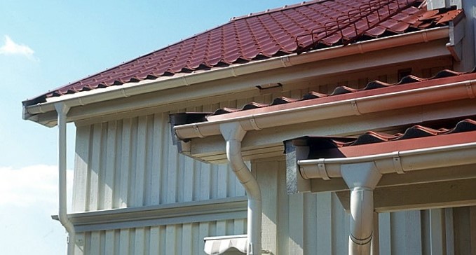 Любая конструкция предусматривает установку желобов по периметру ската крыши. Его длина варьируется при помощи соединителей. Вывод осадков из желобов происходит по сливным трубам в наземный или подземный канал для отвода воды от здания.