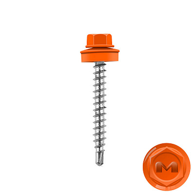 Кровельные саморезы Daxmer (Даксмер) по дереву цветом RAL2004 Оранжевый Апельсин 4,8*35мм окрашиваются УФ-стойкой полиэфирной порошковой краской. Цинковое антикоррозийное покрытие обеспечивает длительный срок службы саморезов (не менее 25 лет). Специальная металлическая шайба с ЕРDМ - уплотнителем обеспечивает плотное прилегание профилированного металла (кровли) к деревянной обрешетке, а также препятствует попаданию влаги.