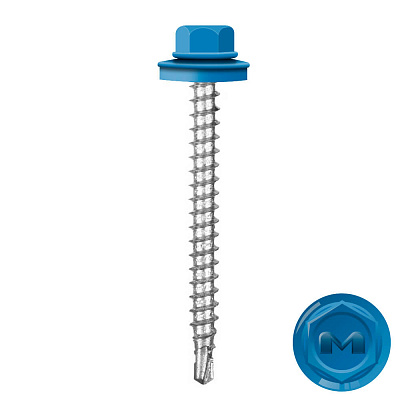 Кровельные саморезы Daxmer (Даксмер) по дереву цветом RAL5015 Небесно-Голубой 4,8*50мм окрашиваются УФ-стойкой полиэфирной порошковой краской. Цинковое антикоррозийное покрытие обеспечивает длительный срок службы саморезов (не менее 25 лет). Специальная металлическая шайба с ЕРDМ - уплотнителем обеспечивает плотное прилегание профилированного металла (кровли) к деревянной обрешетке, а также препятствует попаданию влаги.