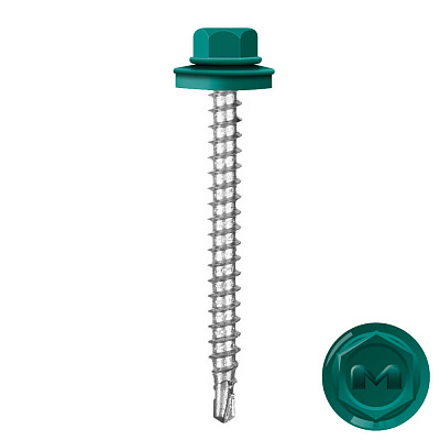 Кровельные саморезы Daxmer (Даксмер) по дереву цветом RAL6026 Опал 4,8*50мм окрашиваются УФ-стойкой полиэфирной порошковой краской. Цинковое антикоррозийное покрытие обеспечивает длительный срок службы саморезов (не менее 25 лет). Специальная металлическая шайба с ЕРDМ - уплотнителем обеспечивает плотное прилегание профилированного металла (кровли) к деревянной обрешетке, а также препятствует попаданию влаги.