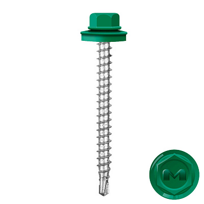 Кровельные саморезы Daxmer (Даксмер) по дереву цветом RAL6029 Зеленая мята 4,8*50мм окрашиваются УФ-стойкой полиэфирной порошковой краской. Цинковое антикоррозийное покрытие обеспечивает длительный срок службы саморезов (не менее 25 лет). Специальная металлическая шайба с ЕРDМ - уплотнителем обеспечивает плотное прилегание профилированного металла (кровли) к деревянной обрешетке, а также препятствует попаданию влаги.
