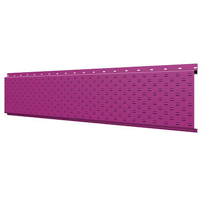 Линеарная потолочно-стеновая панель с ПЕРФОРАЦИЕЙ для вентиляции цвет RAL4006 Пурпурный применяется в качестве софитов для подшивы крыши, наружной и внутренней отделки потолков, стен, фронтонов фасада дома в Хабаровске.