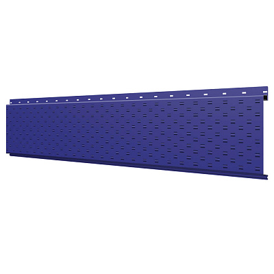 Линеарная потолочно-стеновая панель с ПЕРФОРАЦИЕЙ для вентиляции цвет RAL5002 Синий Ультрамарин применяется в качестве софитов для подшивы крыши, наружной и внутренней отделки потолков, стен, фронтонов фасада дома в Хабаровске.
