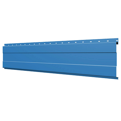 Линеарная потолочно-стеновая панель с ПОЛОСОЙ усиленная цвет RAL5015 Небесно-Голубой применяется в качестве софитов для подшивы крыши, наружной и внутренней отделки потолков, стен, фронтонов фасада дома в Хабаровске.