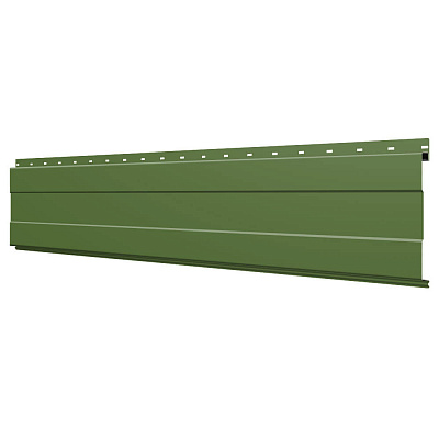 Линеарная потолочно-стеновая панель с ПОЛОСОЙ усиленная цвет RAL6002 Зеленый Лист применяется в качестве софитов для подшивы крыши, наружной и внутренней отделки потолков, стен, фронтонов фасада дома в Хабаровске.