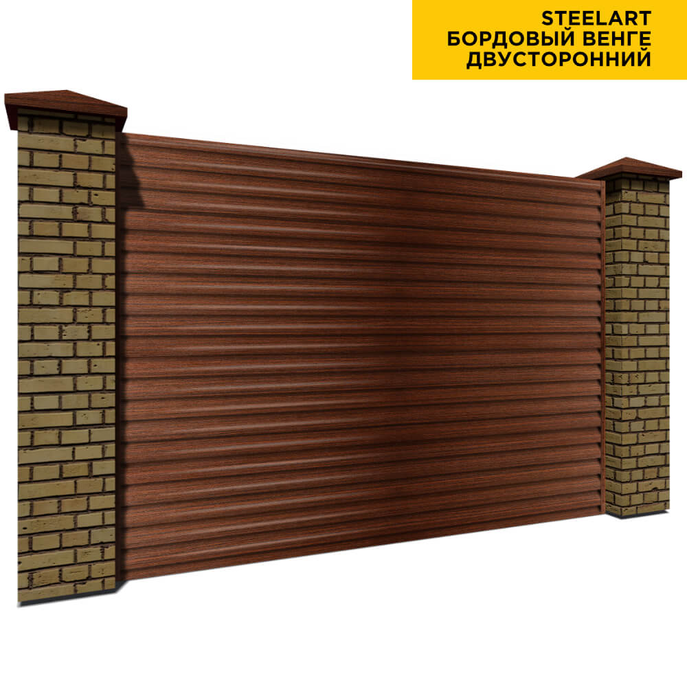Ламель Еврожалюзи металлическая S-образная, цвет под дерево Бордовый Венге SteelArt Россия двухстороннее покрытие, длина любая кратно 1см под заказ - для забора-жалюзи, беседки, перголы в Хабаровске