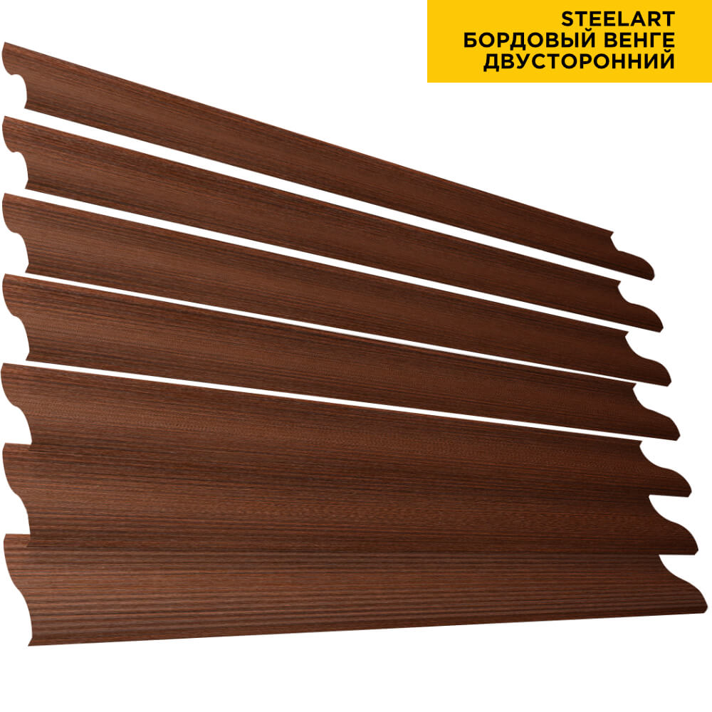 Ламель Еврожалюзи металлическая S-образная, цвет под дерево Бордовый Венге SteelArt Россия двухстороннее покрытие, длина любая кратно 1см под заказ - для забора-жалюзи, беседки, перголы в Хабаровске.