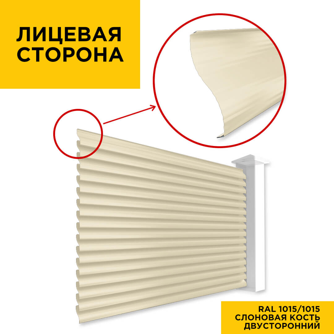 Ламель забора Еврожалюзи металлическая S-образная, цвет RAL 1015/1015 Слоновая Кость двустороннее покрытие полиэстер, длина любая кратно 1см под заказ - для забора-жалюзи, беседки, перголы в Хабаровске