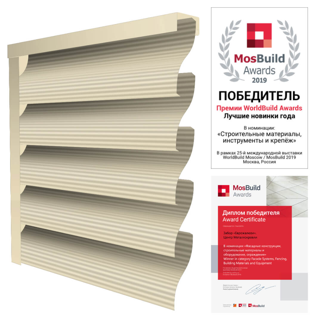 Обладая воздухопроницаемостью, еврожалюзи отлично подойдут для расположенных в низинах участков. Установленные под углом ламели не позволяют воздуху застаиваться и способствуют испарению ненужной влаги. Рельефная форма ламелей еврожалюзи не сравнится со стандартным забором — ограждение имеет визуальную глубину благодаря трёхмерным пластинам. Такой забор станет качественной акустической преградой, расположившись у автомагистралей и проезжих частей.
