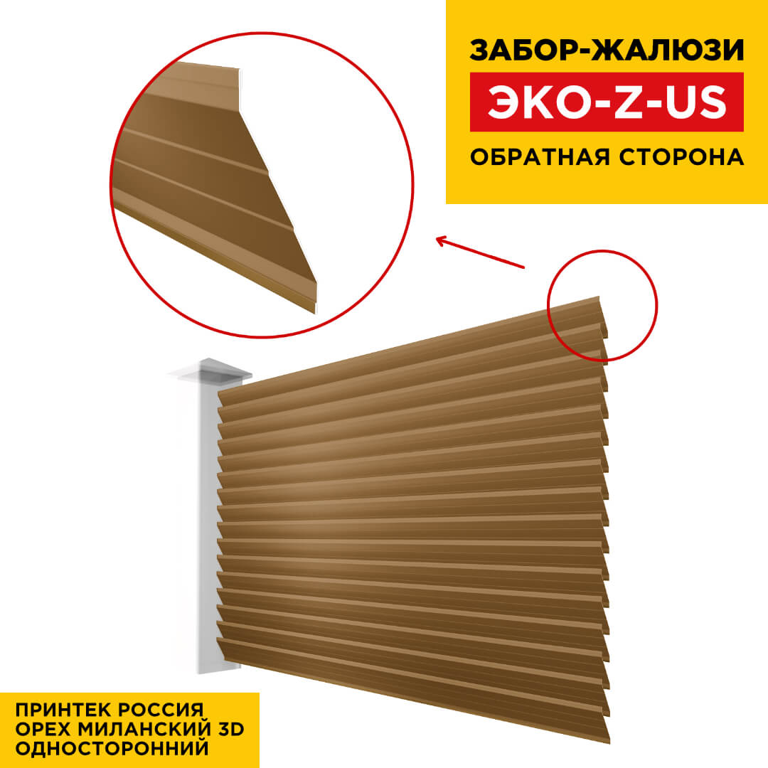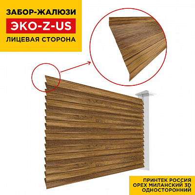 Ламель металлическая Z-образная усиленная ЭКО-Z-US, цвет под дерево Орех Миланский 3D Принтек Россия одностороннее покрытие, длина любая кратно 1см под заказ - для забора-жалюзи, беседки, перголы в Хабаровске