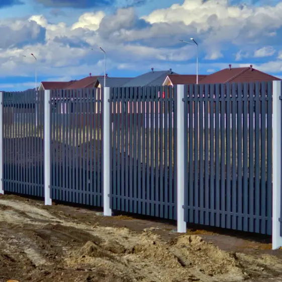 Современный, стильный и долговечный — именно так можно описать этот забор из металлического штакетника Полукруглого RAL 7024 Серый Графит двусторонний. Он подчеркивает статус и премиальность коттеджного поселка, обеспечивает надежную защиту и зонирование территории. Двустороннее исполнение делает ограждение одинаково эстетичным как снаружи, так и изнутри, а прочные материалы гарантируют долгие годы безупречного внешнего вида и уверенности в своем выборе.